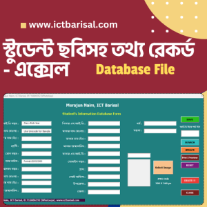 ষ্টুডেন্ট- ছবি সহ তথ্য রেকর্ড – এক্সেল ডাটাবেইজ