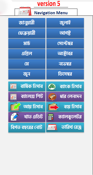 # ভার্সন 4 এ বারো মাসের আয়-ব্যয়, এক বছরের টপশিট এবং ব্যাংক হিসাব পাওয়া যাবে।